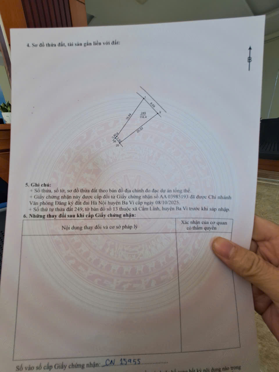 Cần tiền bán lô đất 116m² CLN tại Cẩm Lĩnh, Ba Vì, Hà Nội.